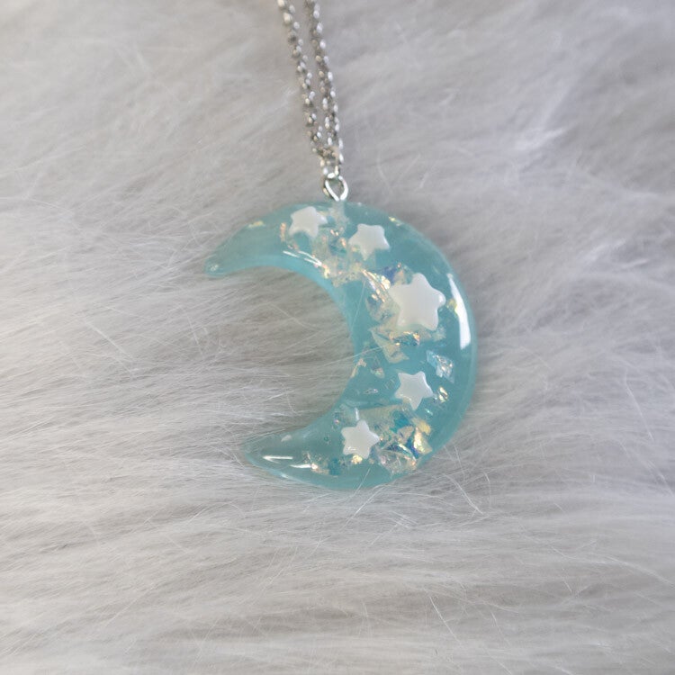 This handmade necklace has a soft, magical feel inspired by the night sky 🌙✨ The crescent moon pendant is filled with tiny star details and subtle shimmer, giving it a dreamy, almost celestial look.