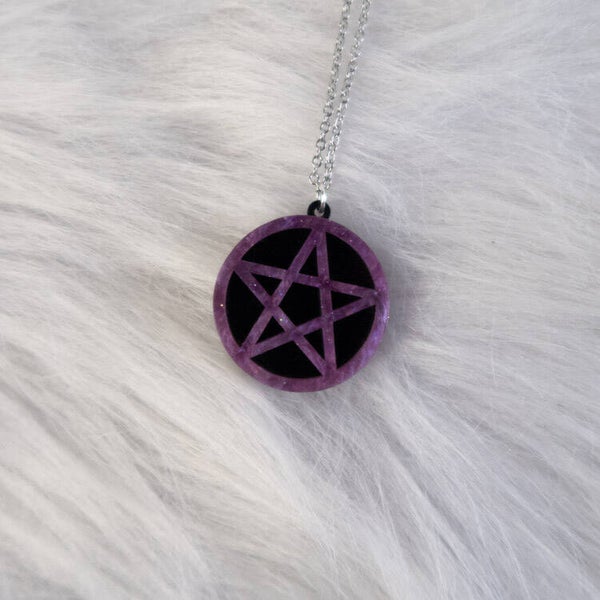 This piece has a strong, mystical presence with a bold pentagram design at its center ✨ The raised symbol adds depth and texture, while the subtle shimmer in the resin gives it a magical, almost enchanted feel.